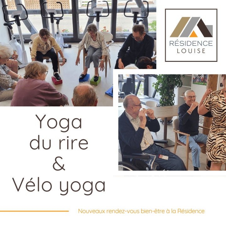Deux nouvelles animations bien-être font leur entrée à la Résidence Louise : yoga du rire et vélo yoga pour bouger, respirer… et sourire.