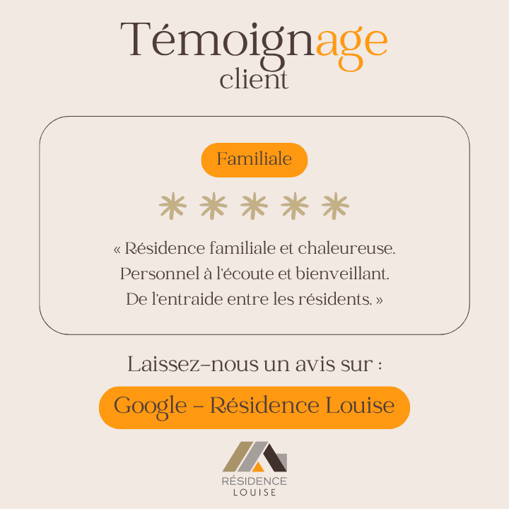 Un résident partage son expérience à la Résidence Louise : sécurité, bien-être, autonomie et vie sociale.